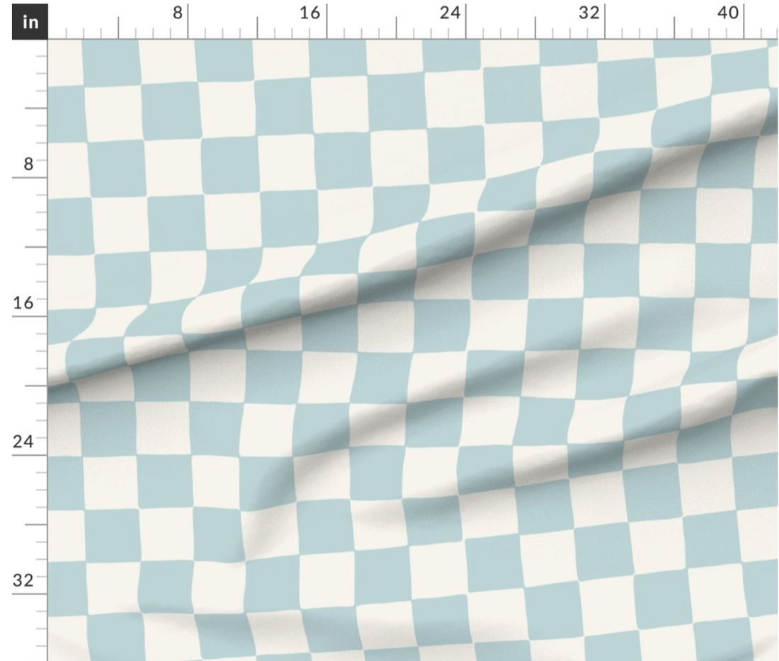 JUMBO - Pastel Blue Nursery - Checkered - Luxury Minky Blanket / Scarf / Pillow