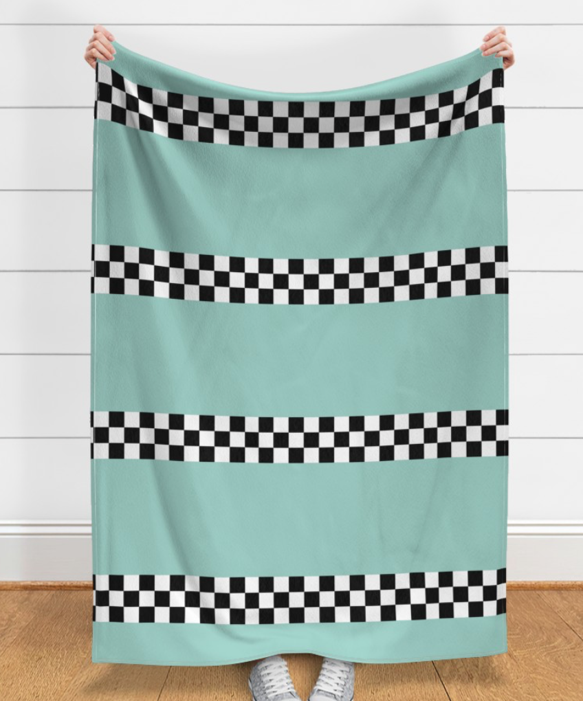 Retro SEAFOAM Checkered - Luxury Minky Blanket / Scarf / Pillow