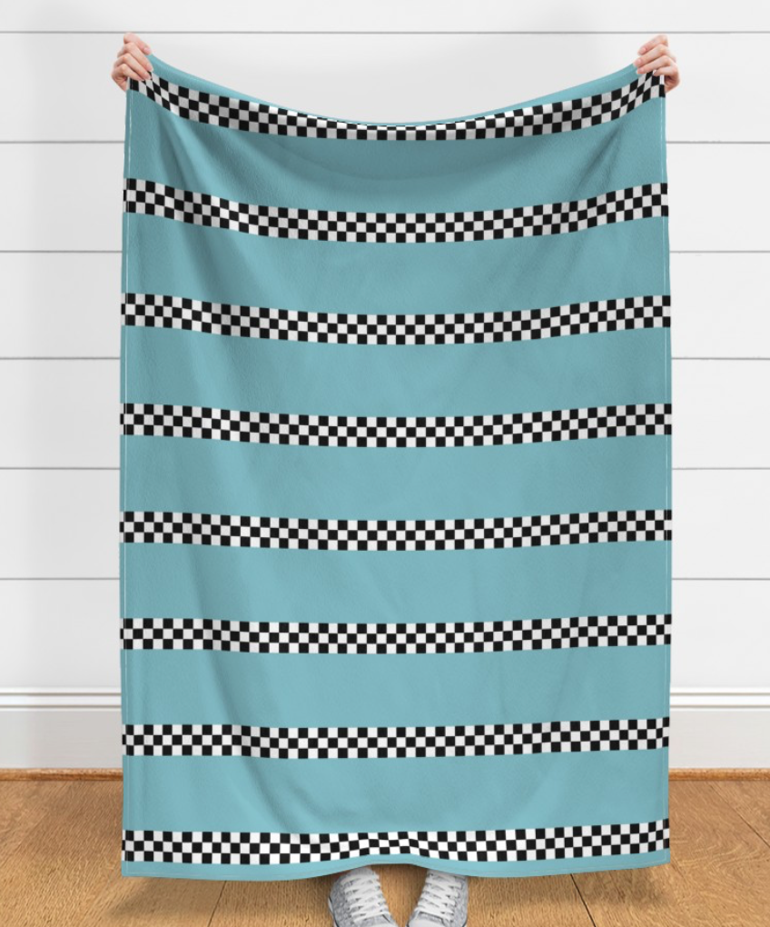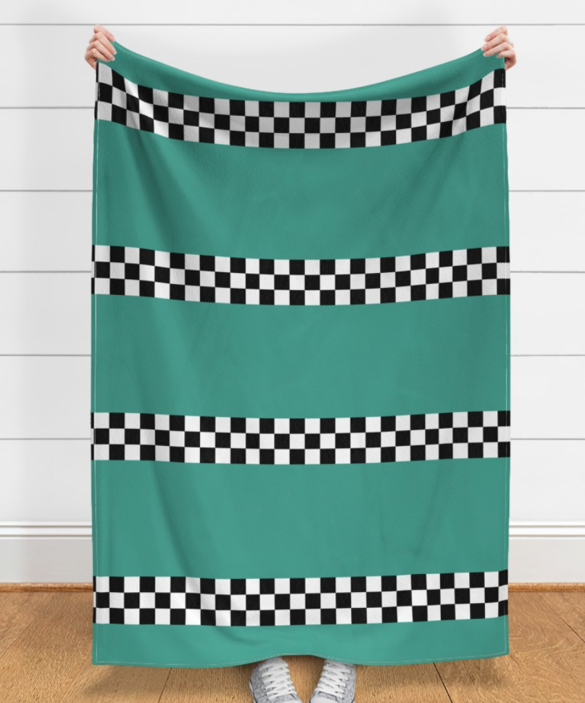 Retro TEAL Checkered - Luxury Minky Blanket / Scarf / Pillow