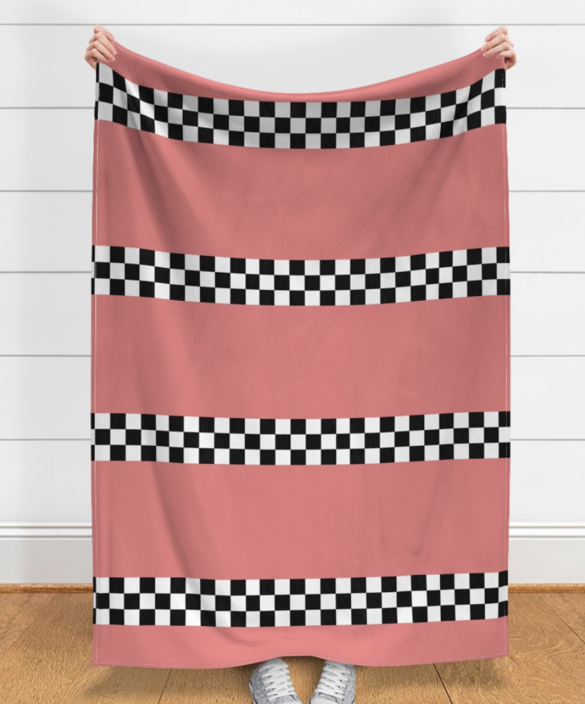 Retro PINK Checkered - Luxury Minky Blanket / Scarf / Pillow
