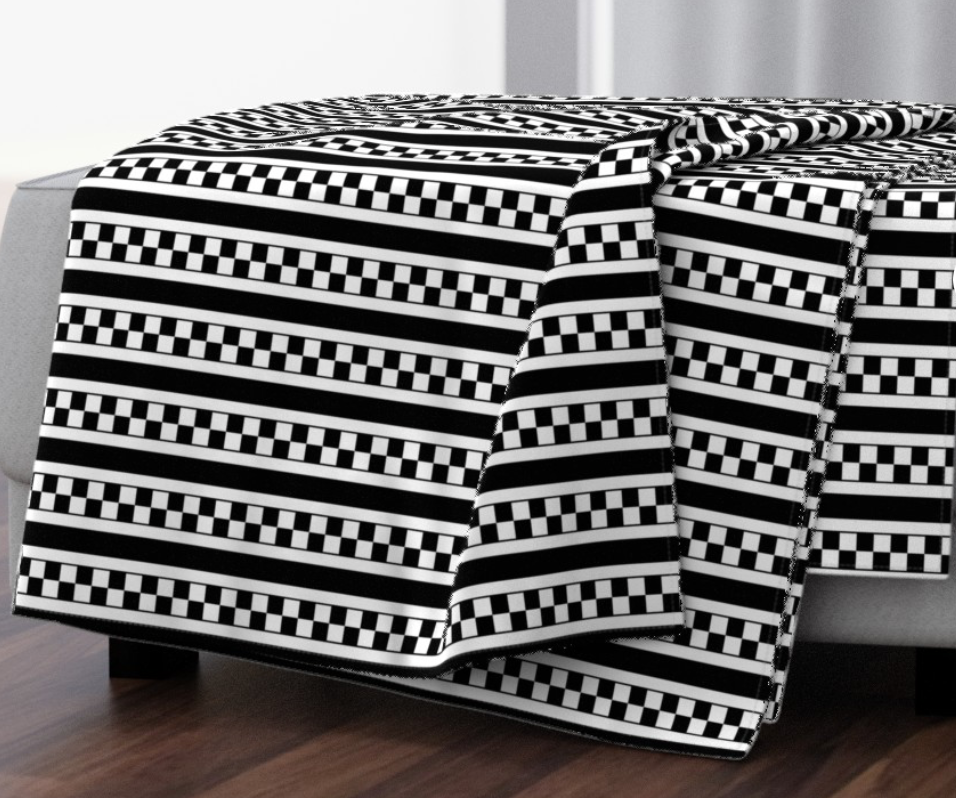 Checkerboard Stripe - Black On White - Luxury Minky Blanket / Scarf / Pillow