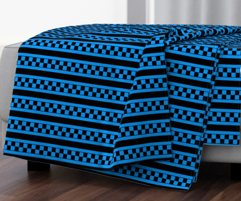 Checkerboard Stripe - BRIGHT BLUE on BLACK - Luxury Minky Blanket / Scarf / Pillow