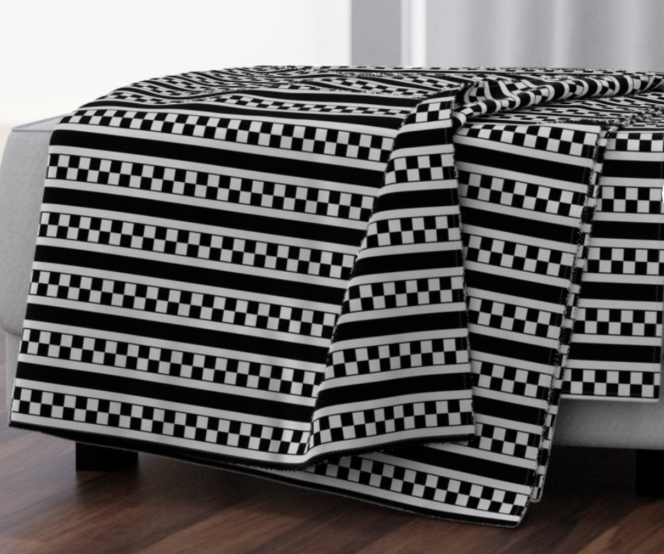 Checkerboard Stripe - LIGHT GREY on BLACK - Luxury Minky Blanket / Scarf / Pillow
