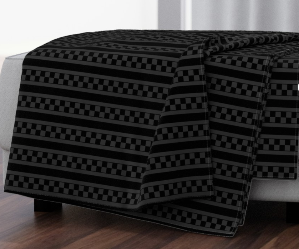 Checkerboard Stripe - DARK GREY on BLACK - Luxury Minky Blanket / Scarf / Pillow