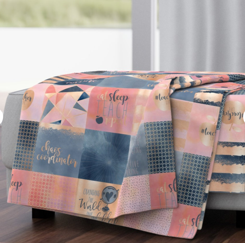 Teacher Life Chaos Coordinator - Peach - Navy Luxury Minky Blanket - pre-order