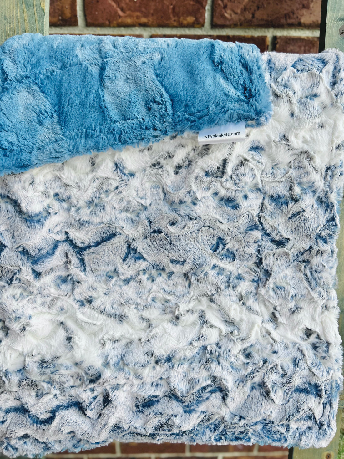 Blue Bellflower Pups - Child Luxury Minky Blanket - RTS
