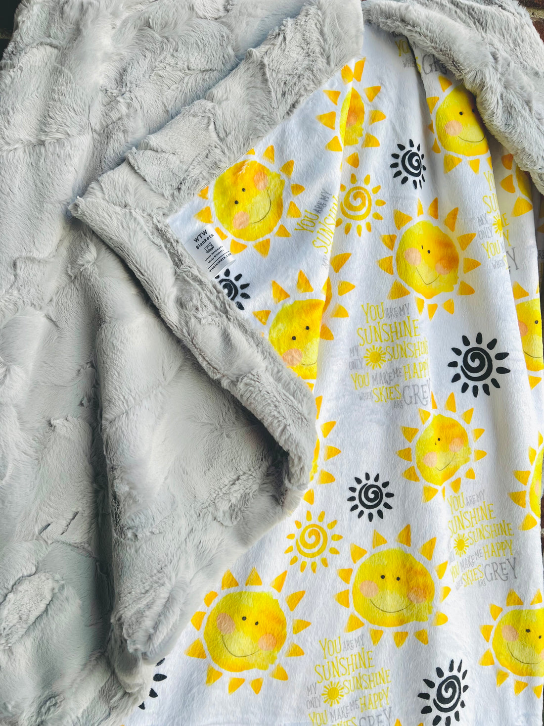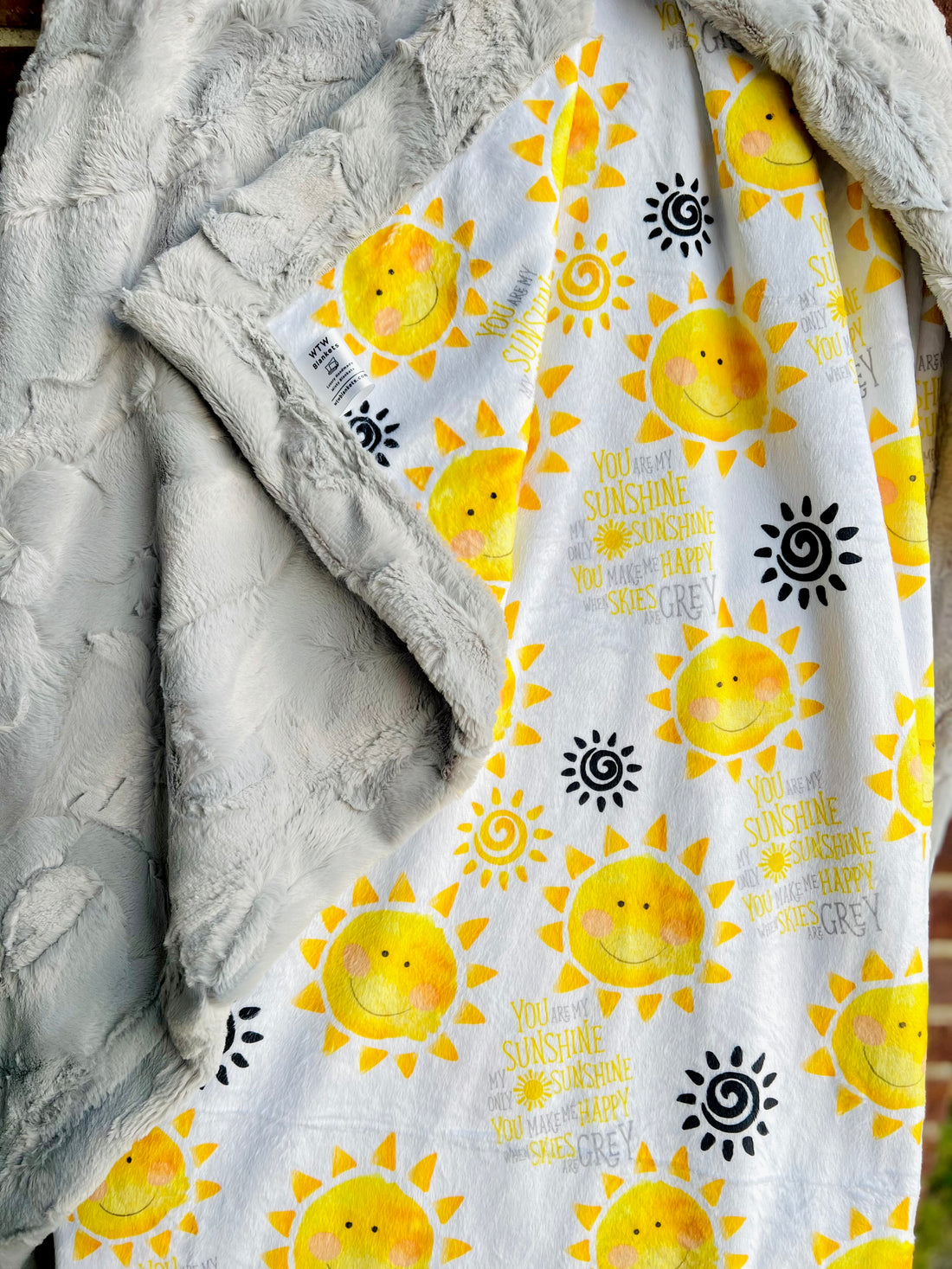 You are my sunshine! Adult Luxury Minky Blanket - grey backing - Pre-Order
