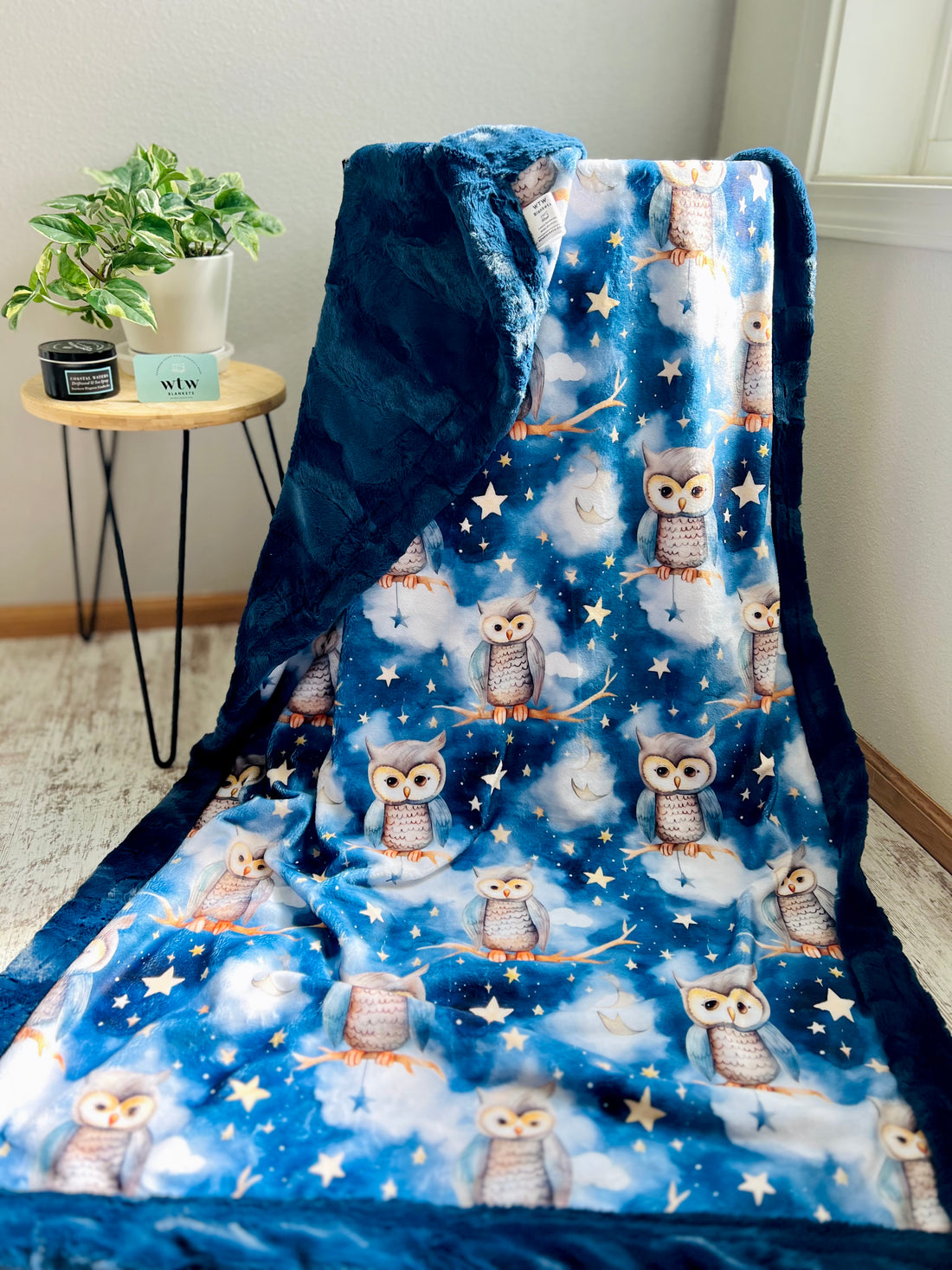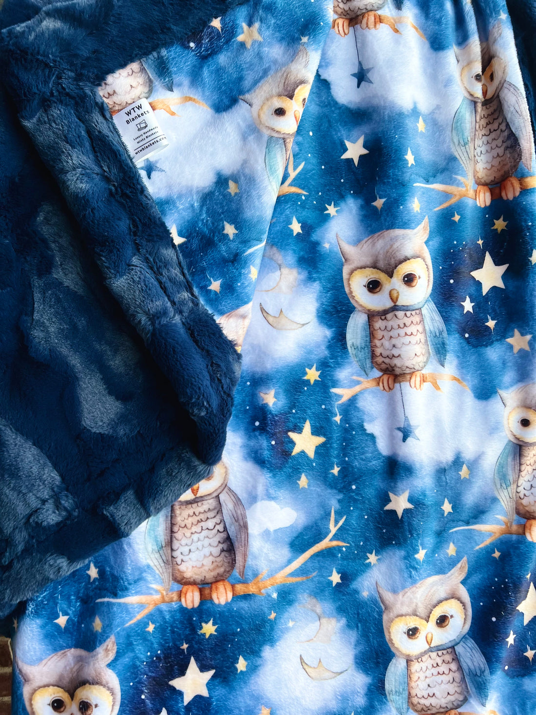 Navy Starry Night Owl - Luxury XL Toddler Blanket - 35x56” - RTS