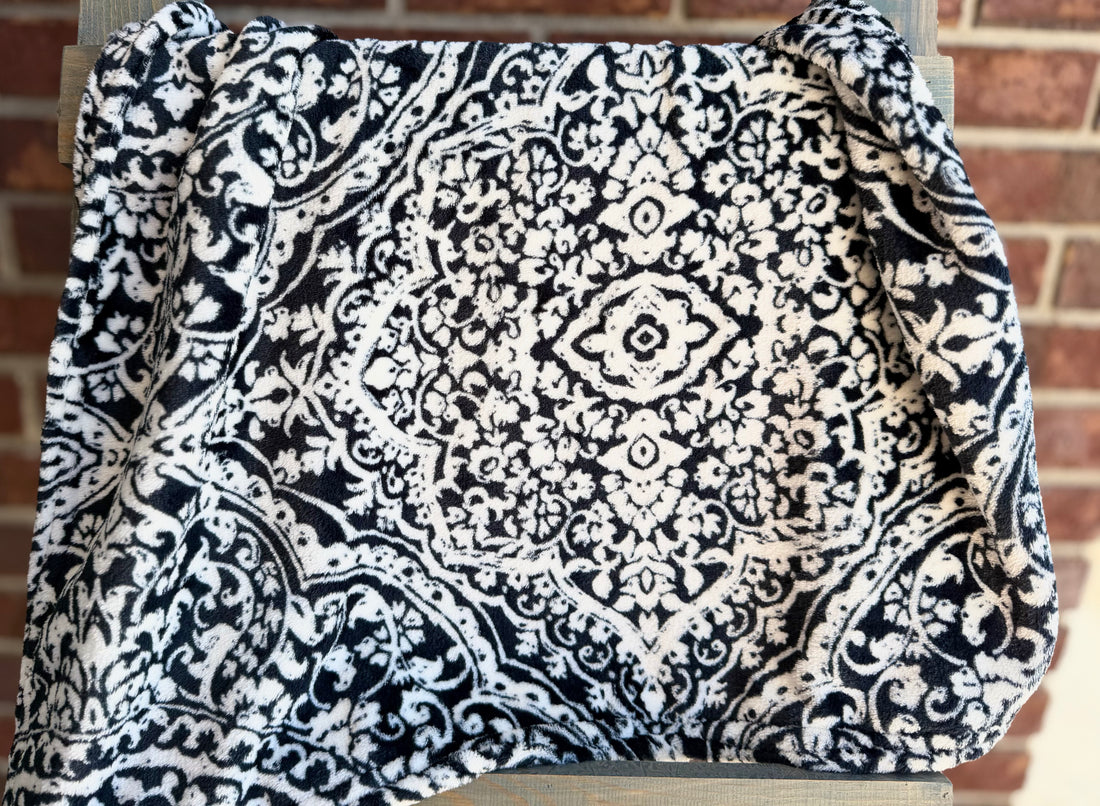 Sew Lush - Black Damask - Car Seat Blanket - 26x26" - RTS