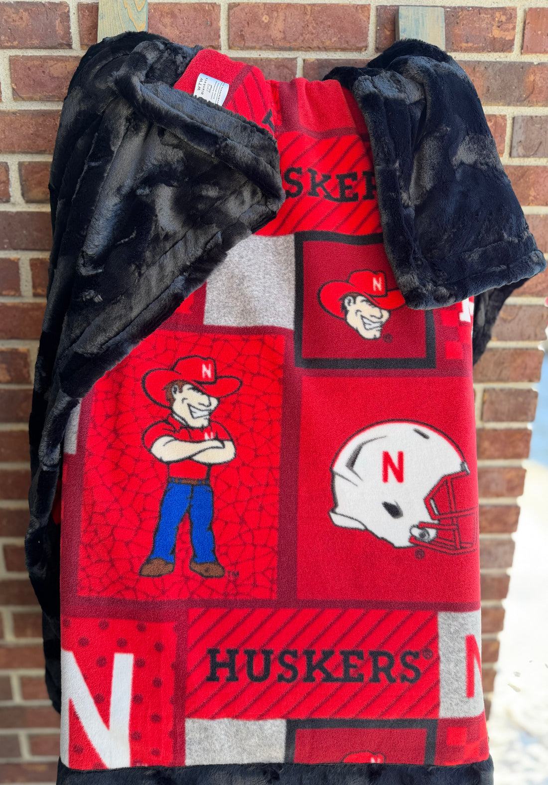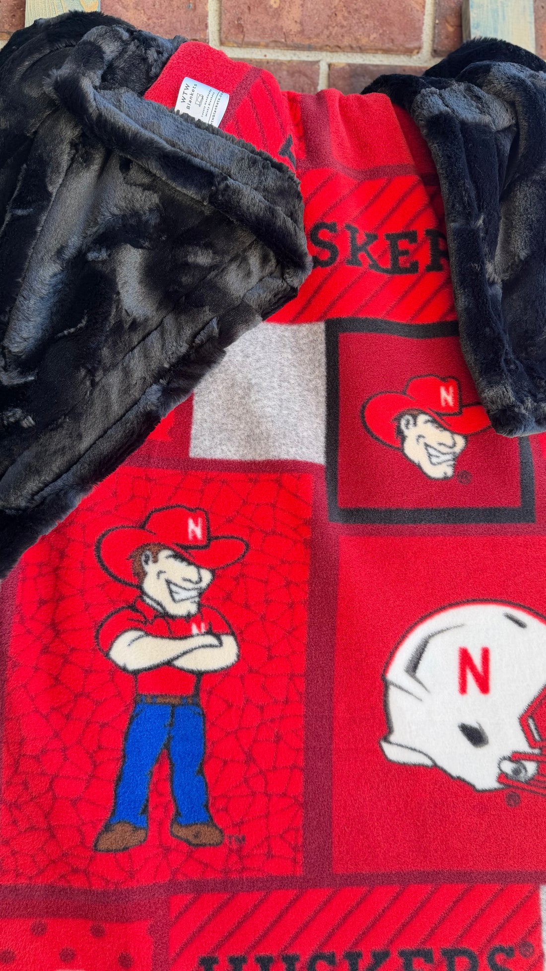 Neb Huskers Fleece with Black Luxury Minky Blanket - XL Adult Travel - 48x58" - RTS